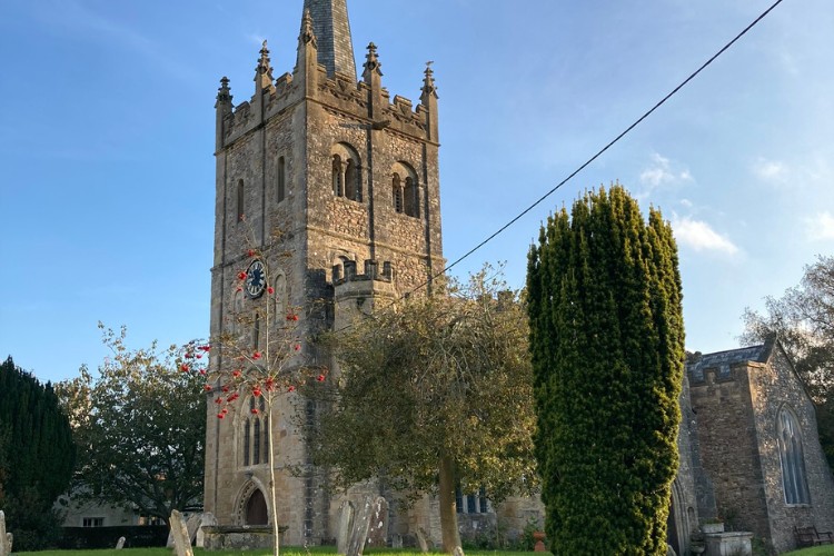 Turn left along the lane towards the Church, there is a brook on your right hand side.